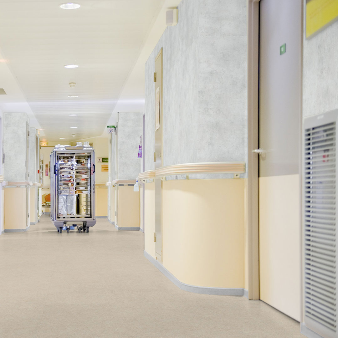 دیوارپوش آنتی باکتریال ژرفلور مدل مورال اولترا دیزاین کد 8721 Manhattan Mist یک دیوارپوش آنتی باکتریال بیمارستانی با طراحی مینیمال و مه آلود خود، زیبایی به همراه استانداردهای بهداشتی و ایمنی را در بالاترین سطح به فضای داخلی بیمارستانها میبخشد. این طرح خاکستری-بتنی و مه آلود، حسی مدرن را به محیطهای درمانی و فضاهای بیمارستانی میبخشد. جنس چندلایه این دیوارپوش آنتی باکتریال با ضخامت 1.5 میلیمتر، مقاومت عالی در برابر ضربه، خراش و کثیفی دارد همچنین مناسب برای شست و شو زیاد و آن را به گزینهای ضد آب و مناسبی برای فضاهای پرتردد با نظافت آسان تبدیل کرده است.